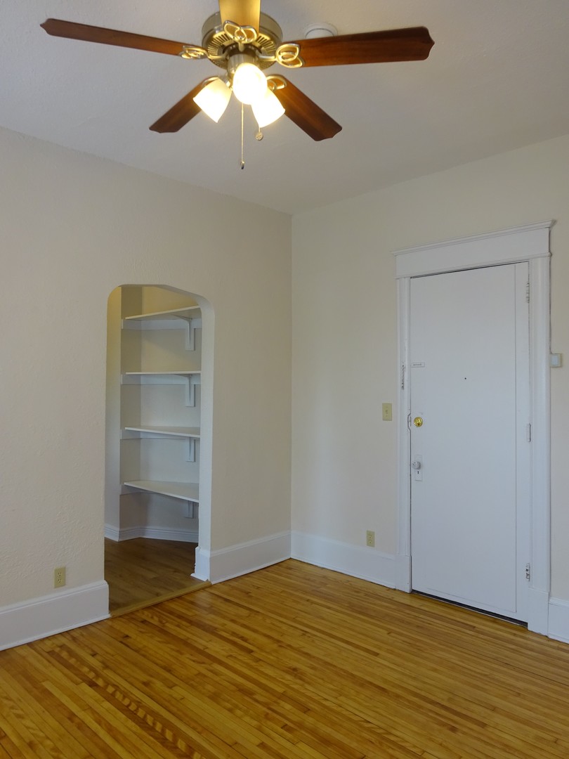 This sunny studio on the second floor faces south and features refinished hardwood floors, large windows, updated kitchen, and a spare room for an office or other use. Utilities are included in rent, except electricity, cable/internet, and an environmental recovery fee of $15 per month. Credit card operated laundry in building. Most pets are welcome; charges and restrictions apply. This property is NONSMOKING.